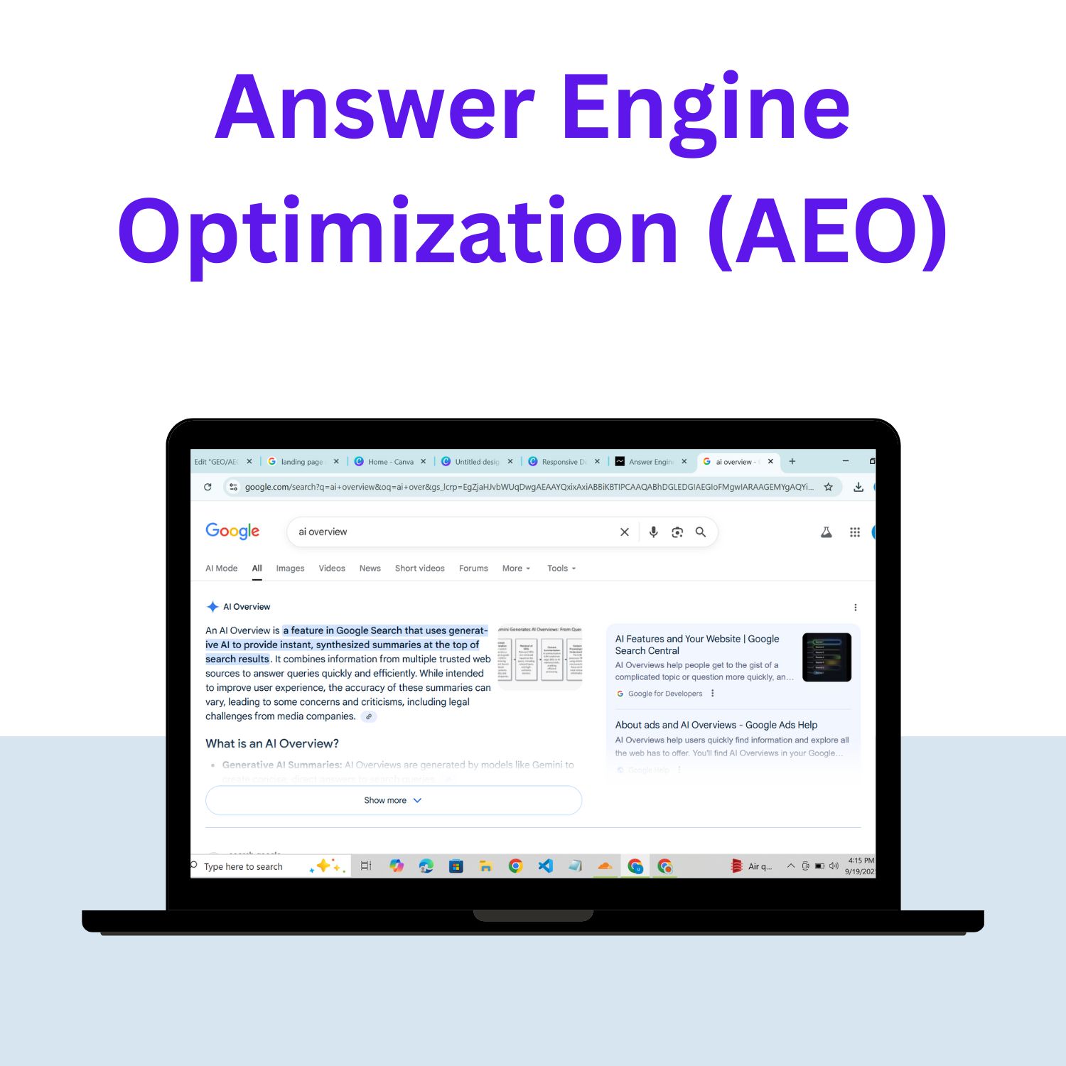 Stay ahead of the competition by making your business discoverable across AI Overviews, GPT-powered answers, and generative search engines. At US Marketing Solution, we specialize in Answer Engine Optimization (AEO) and Generative Engine Optimization (GEO) to ensure your content ranks where it matters most.